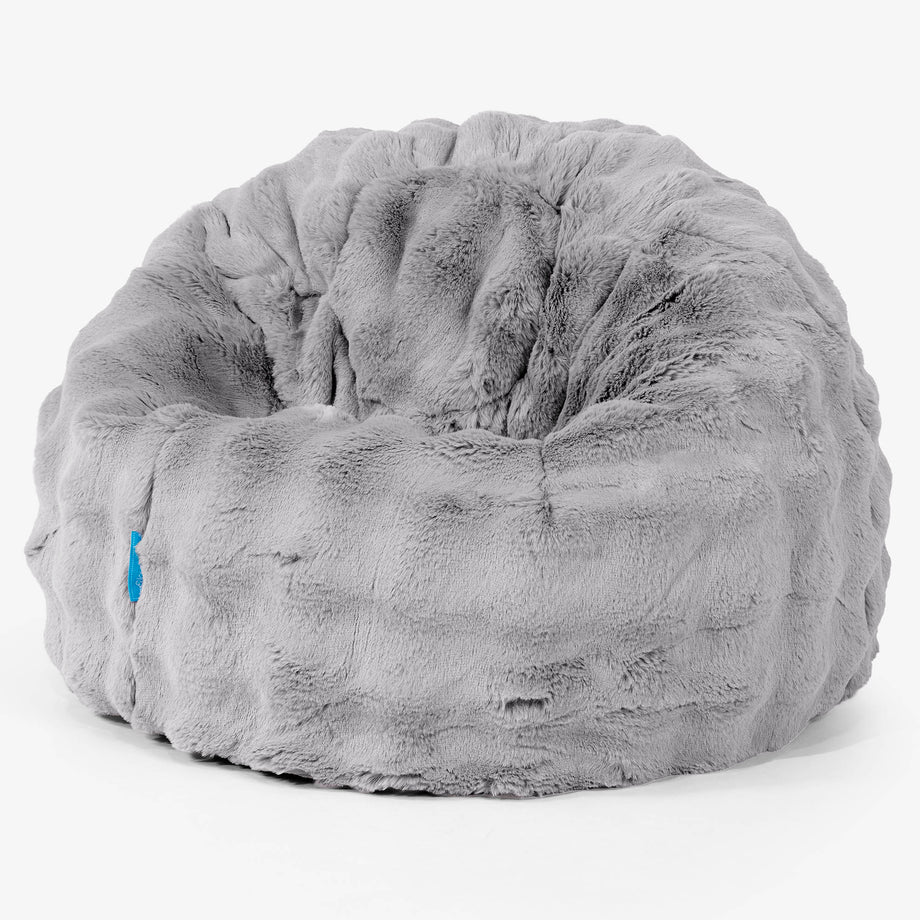 Lounge Pug, Kinder Klassieke Zitzak Stoel, Poef, Namaakbont Bubble Grijs– Big Bertha Original NL