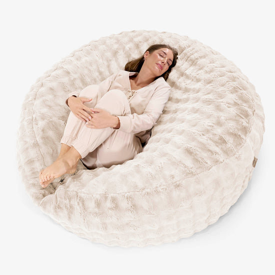 Lounge Pug Mega-Mammoet Zitzak Bank Namaakbont Bubble Crème– Big Bertha Original NL