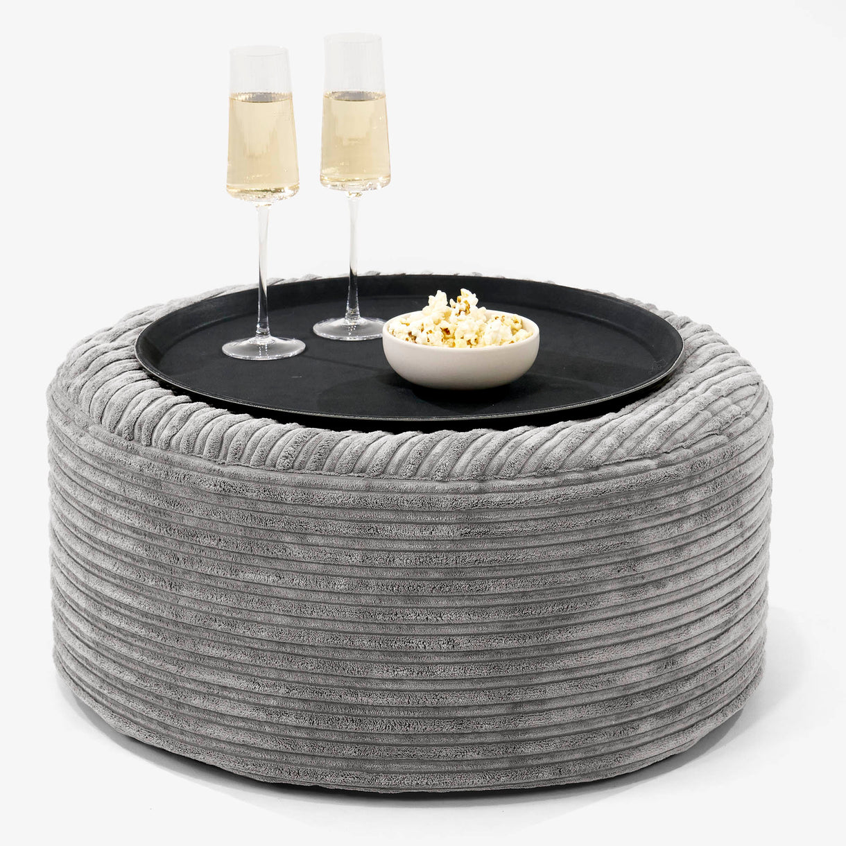 Lounge Pug Ottoman Poef met Dienblad Corduroy Graphite Grijs– Big Bertha Original NL